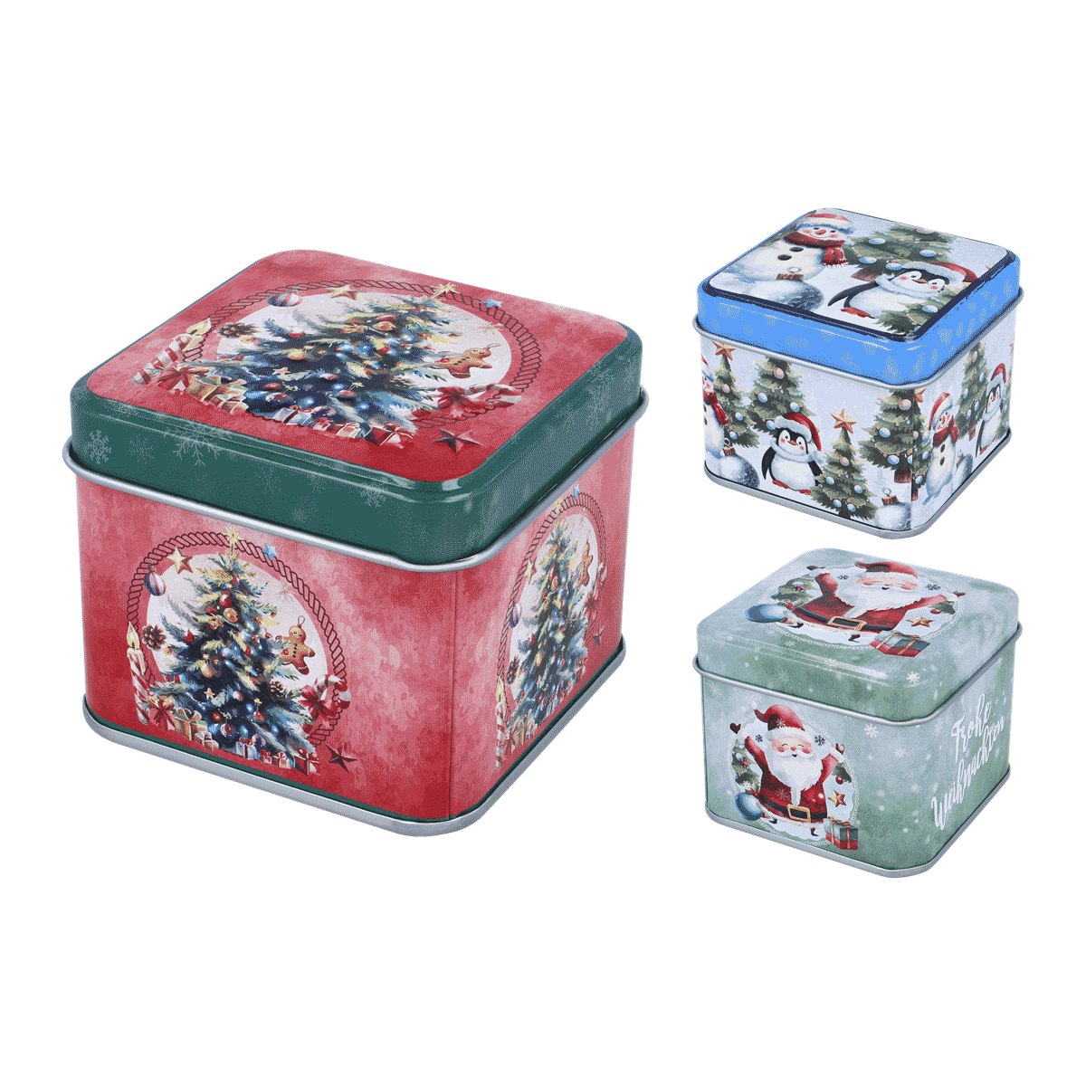3D Plätzchendose zur Aufbewahrung, 7,5x7,5x6 cm, Metall, 3-fach sortiert