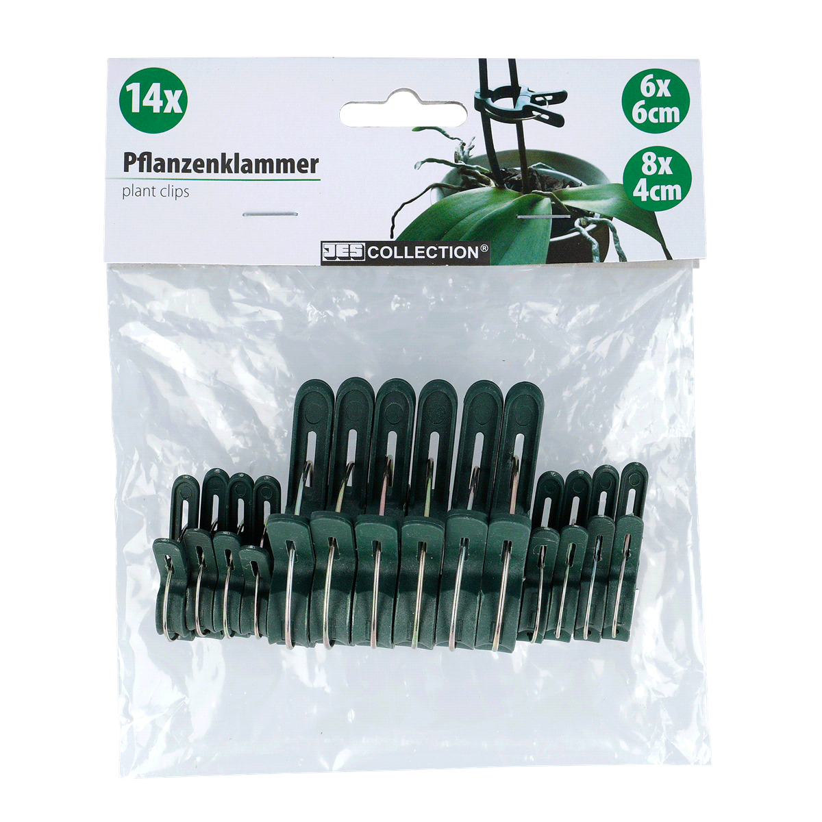 14er praktische grüne Gartenclips in 2 Größen sortiert, PP/Stahl