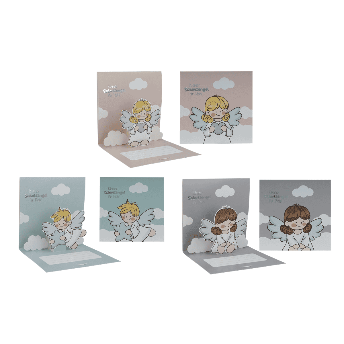 3D Grußkarte mit Umschlag SCHUTZENGEL, 13,3x13,3 cm, sortiert