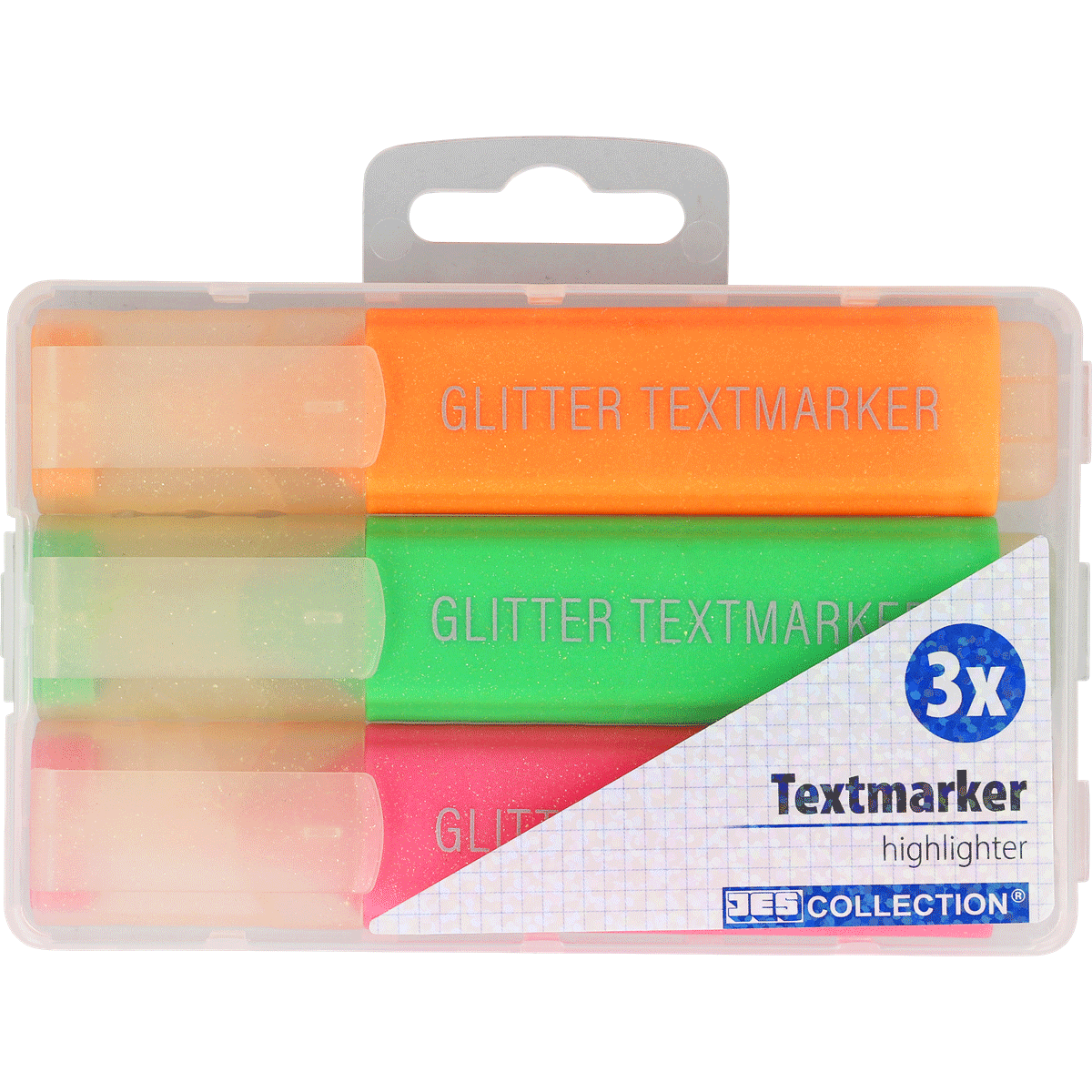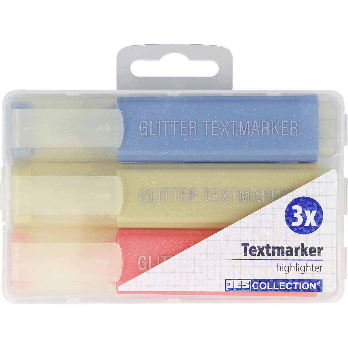 3er Textmarker GLITTER, 12 cm, PP-Kunststoff, farbig sortiert
