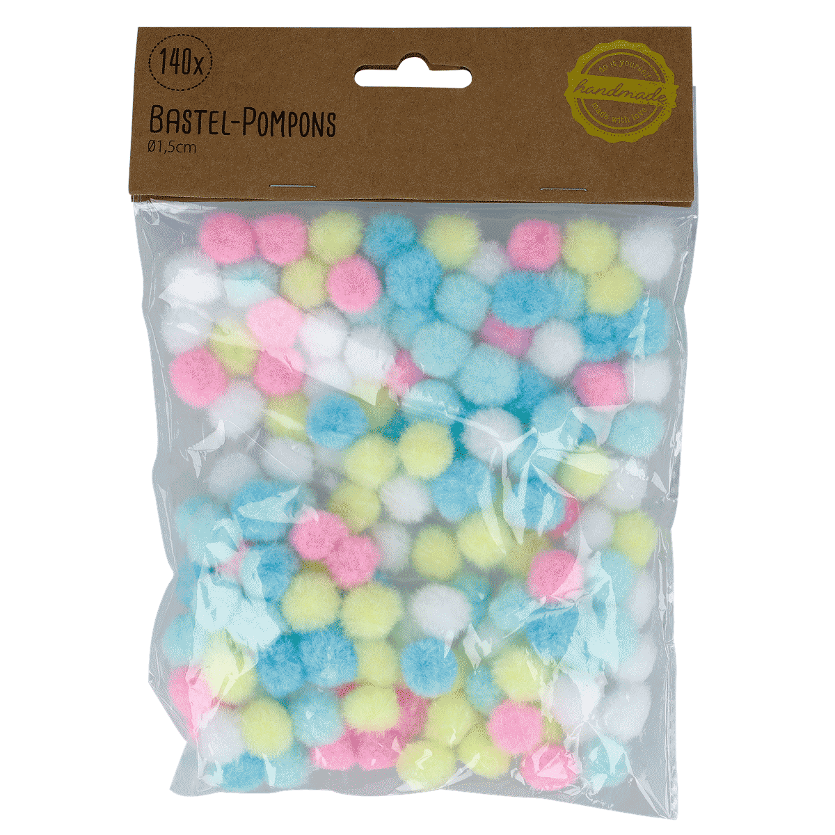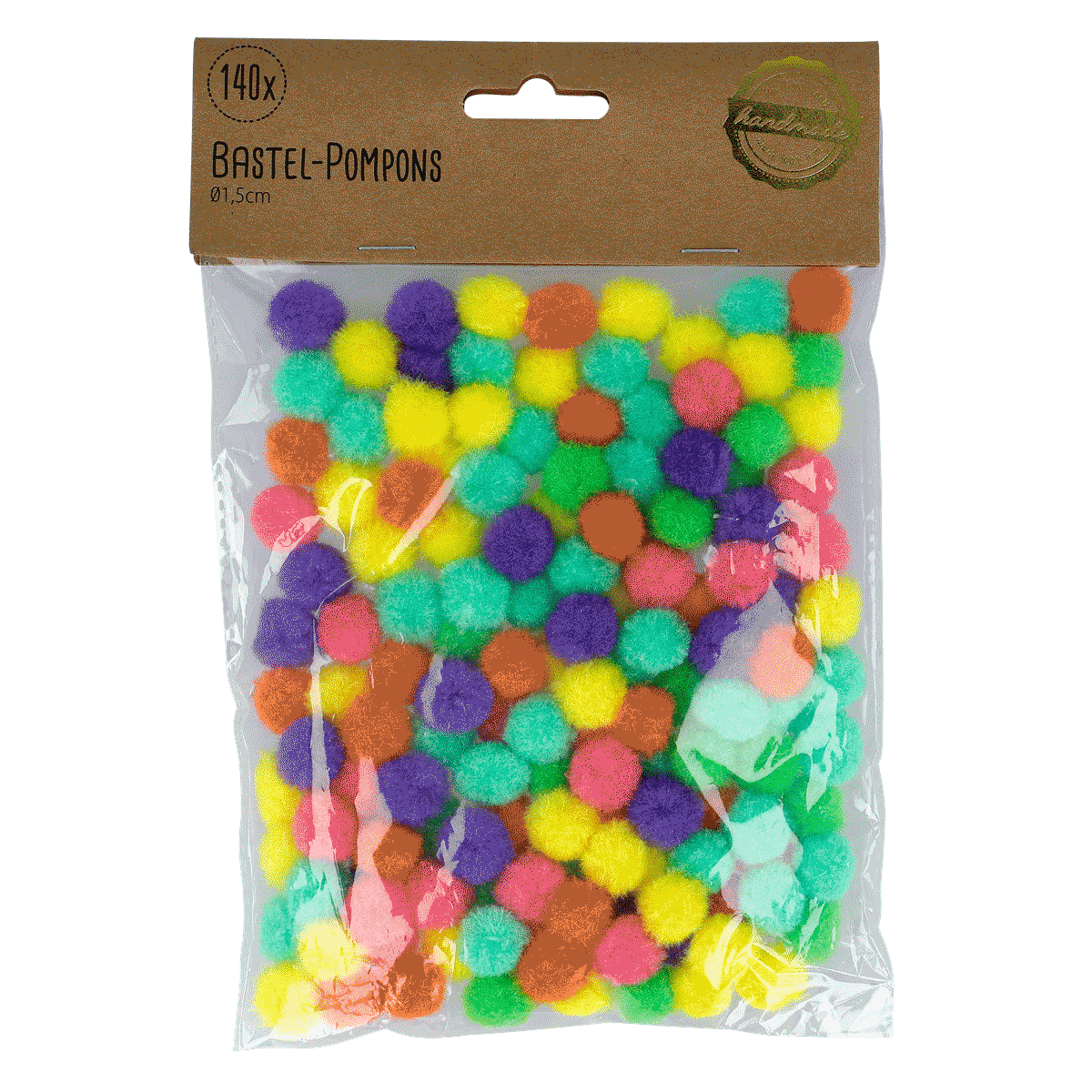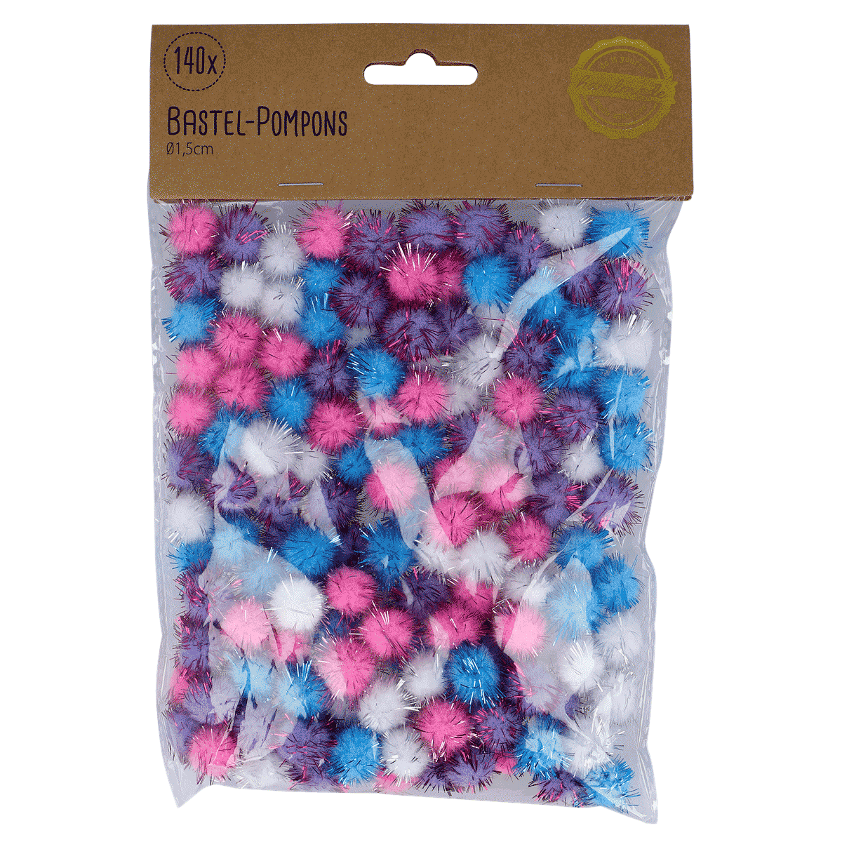140er bunte Pompons aus Polyester, Ø1,5 cm, farbig sortiert