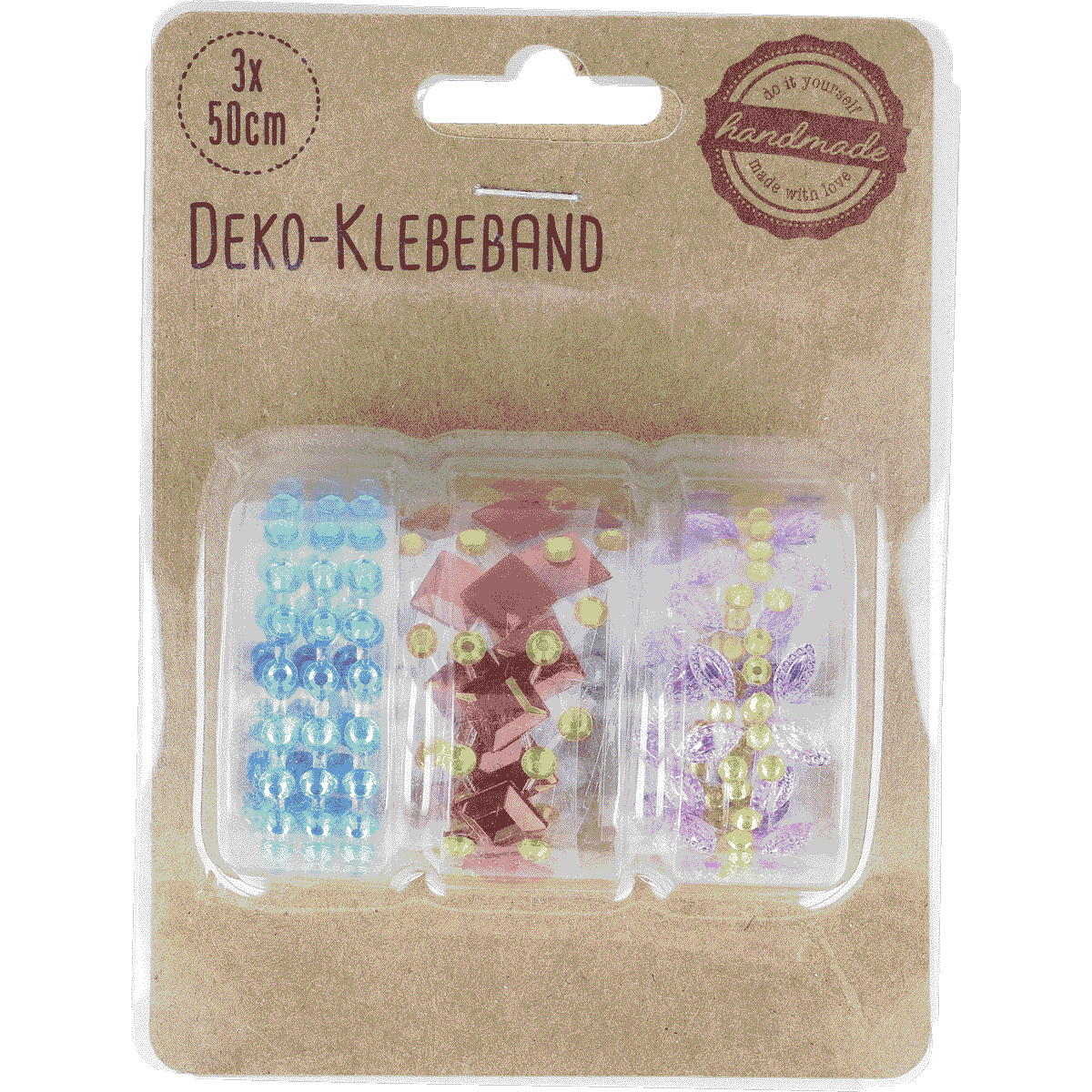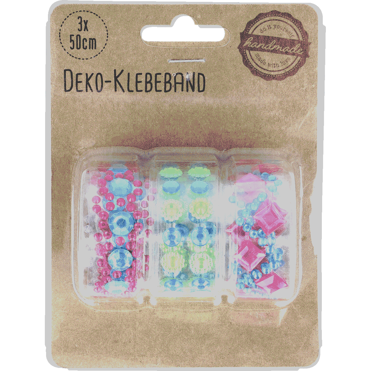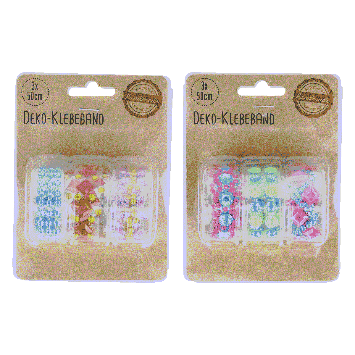 3er Deko-Klebeband mit Strasssteinen je 50x2 cm, PS-Kunststoff, sortiert