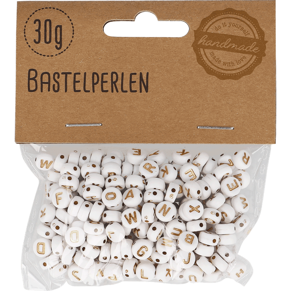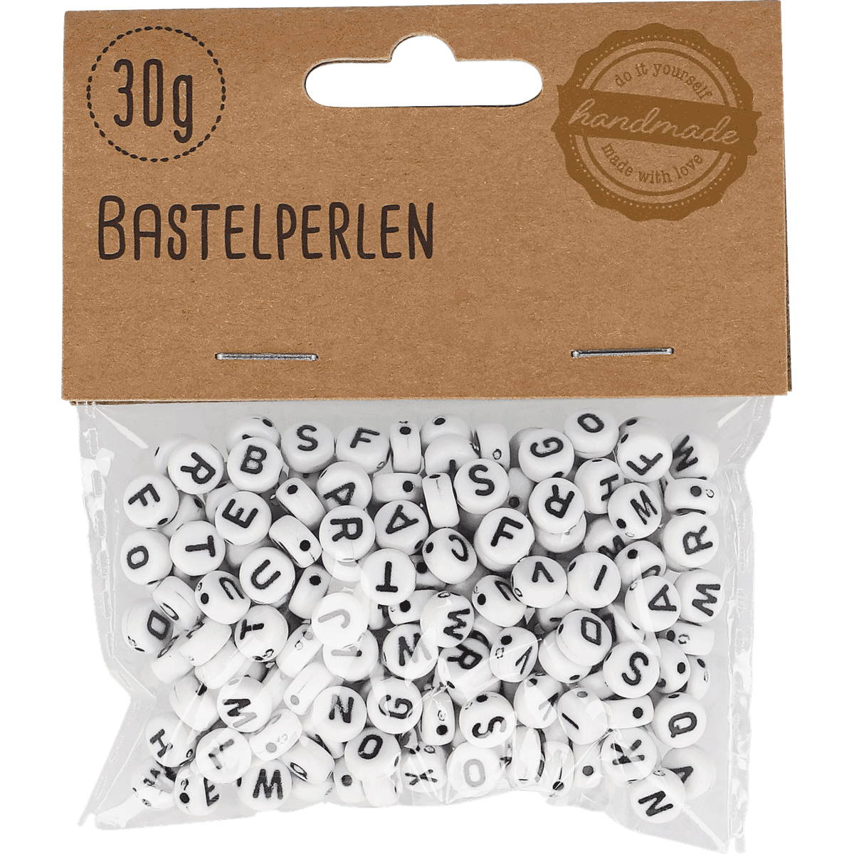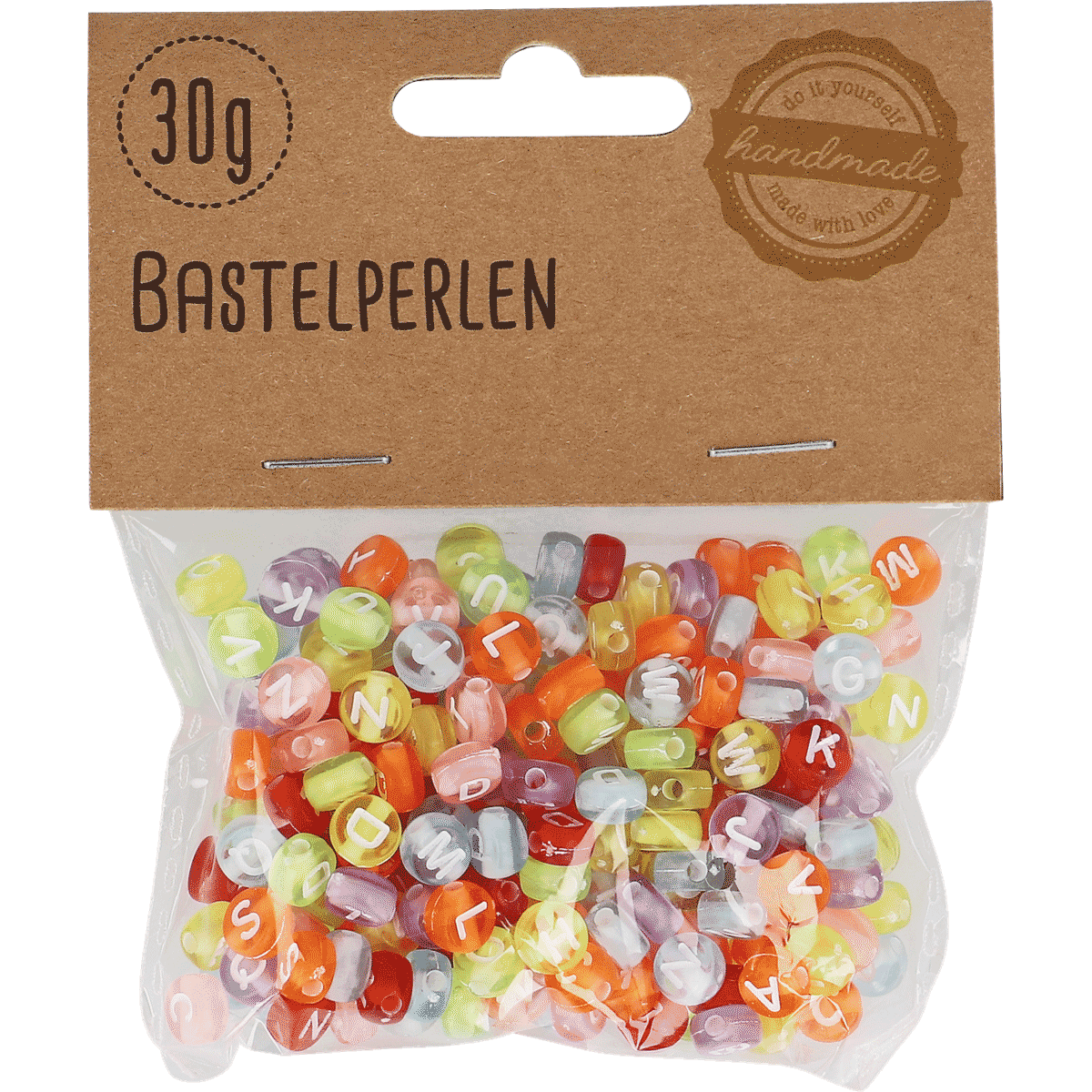 Flache Bastelperlen mit Buchstaben, 30g/Ø6 mm, PS-Kunststoff, farbig sortiert