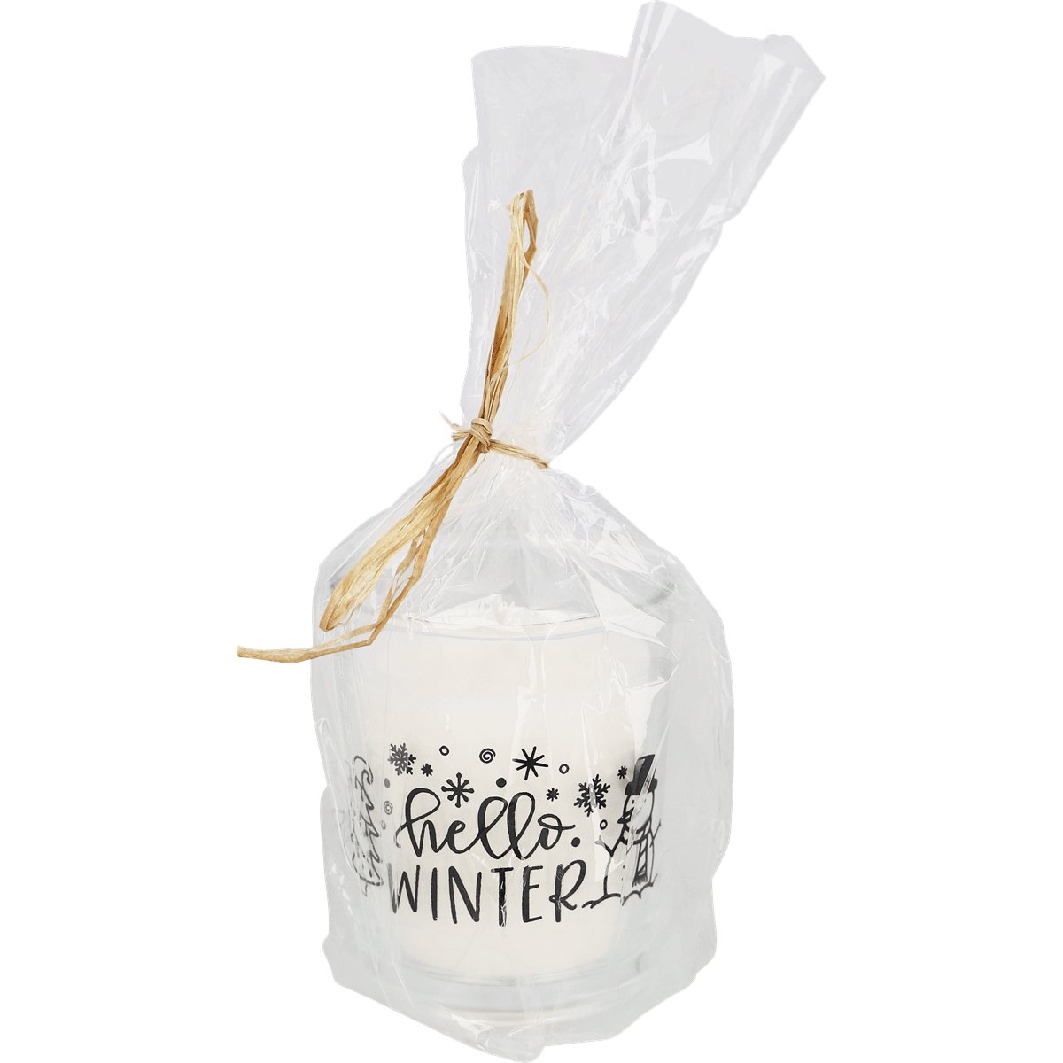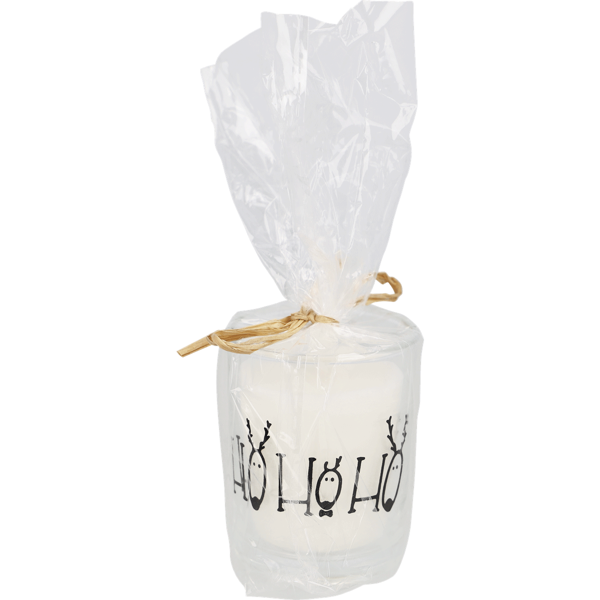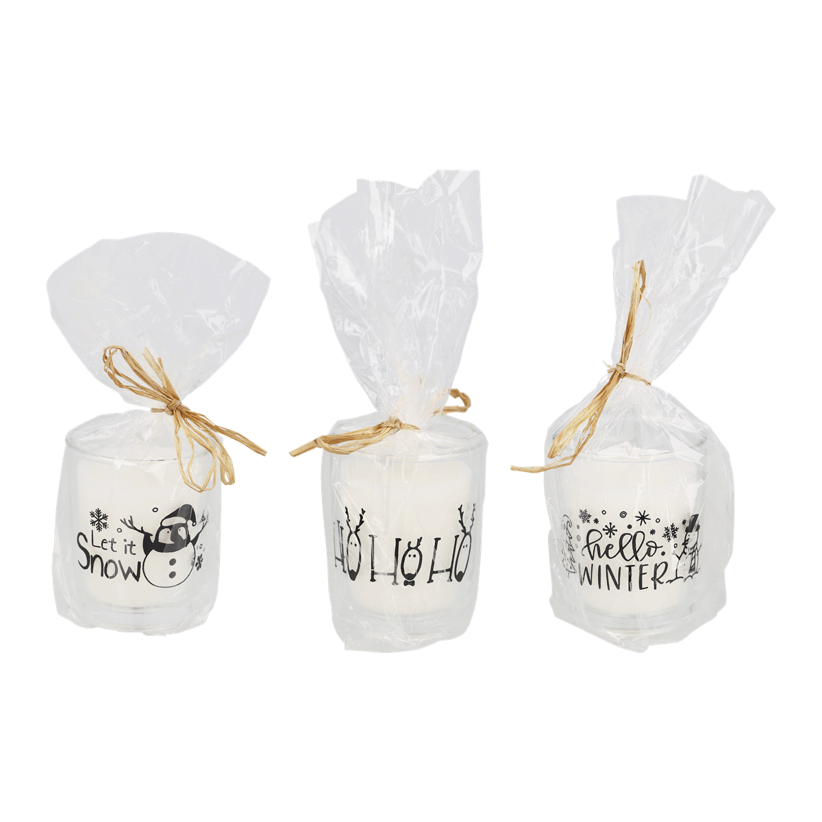 Wachs-Kerze im Glas mit Spruch, 5x6 cm, 3-fach sortiert