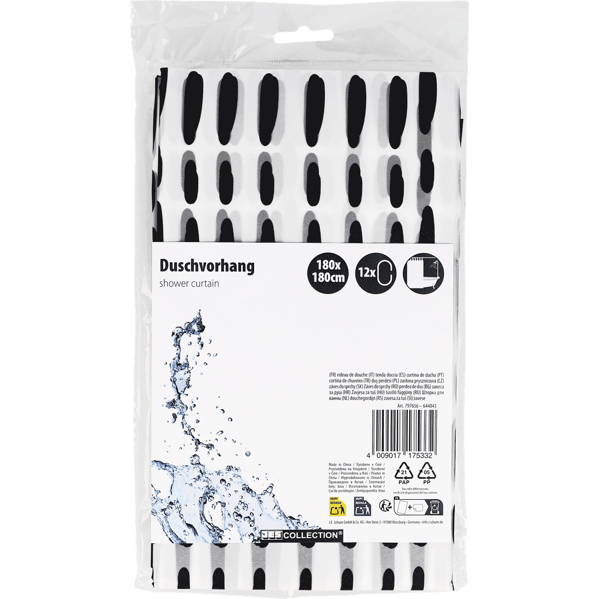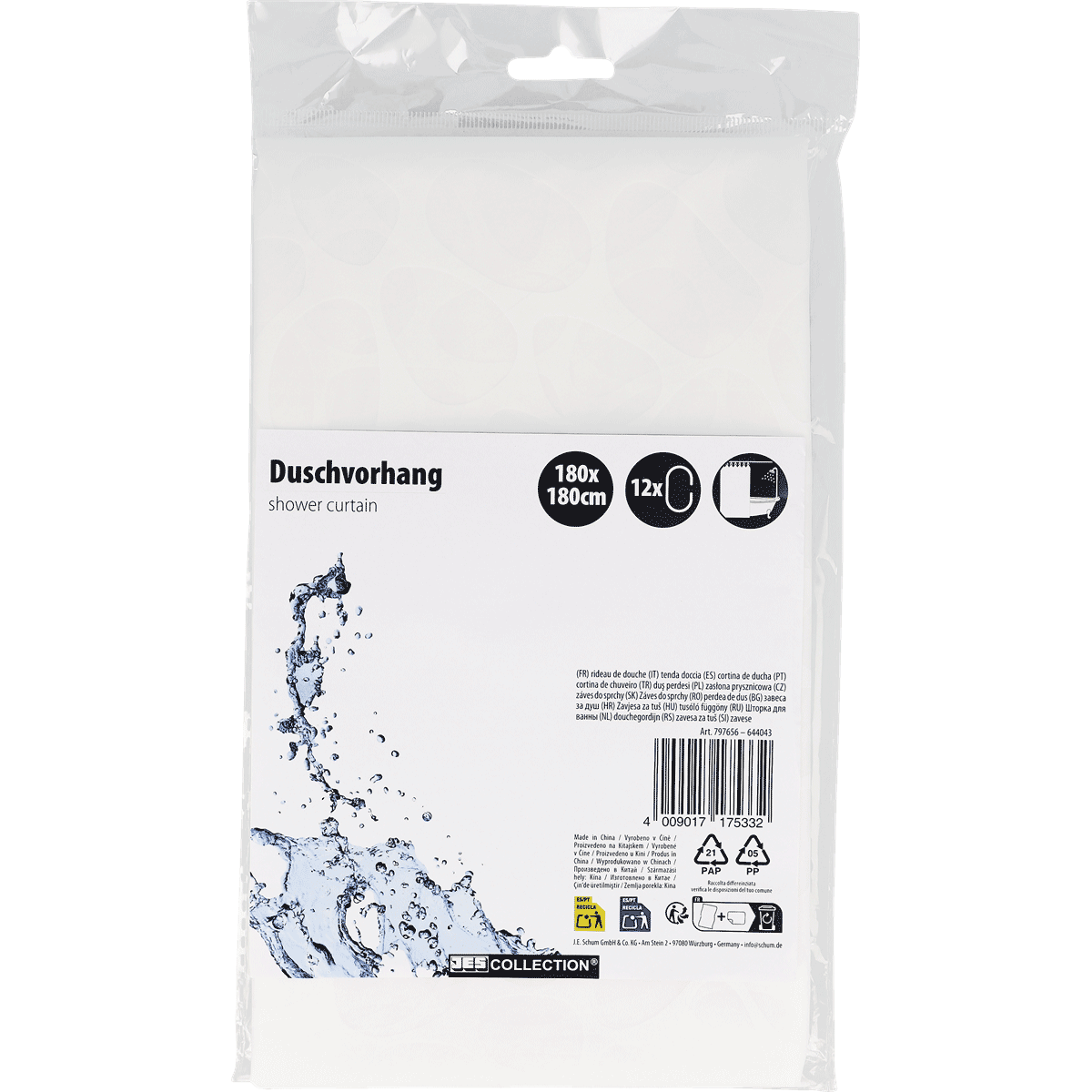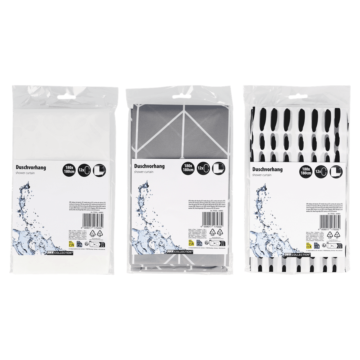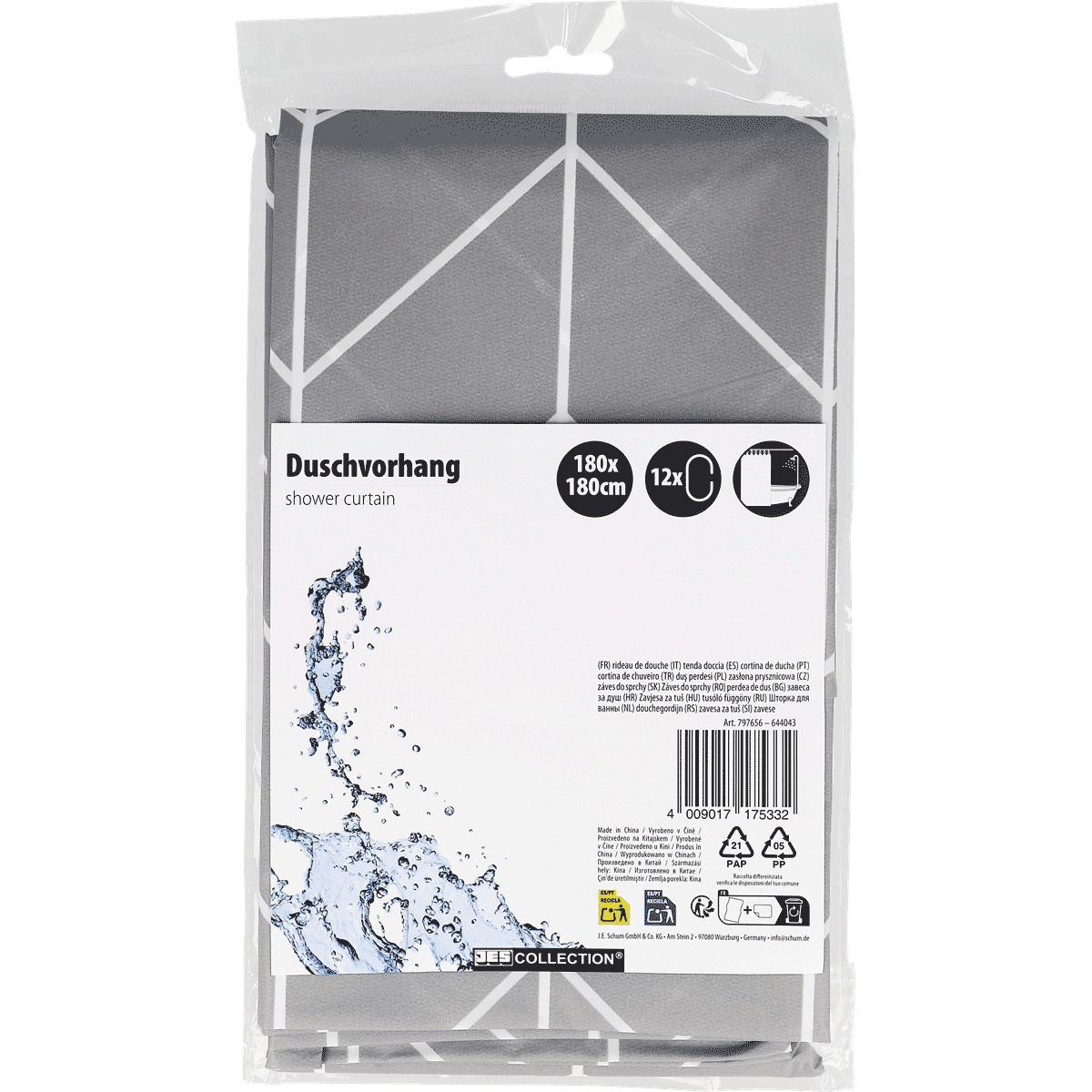 Duschvorhang mit 12 Haken, 180x180 cm, sortiert