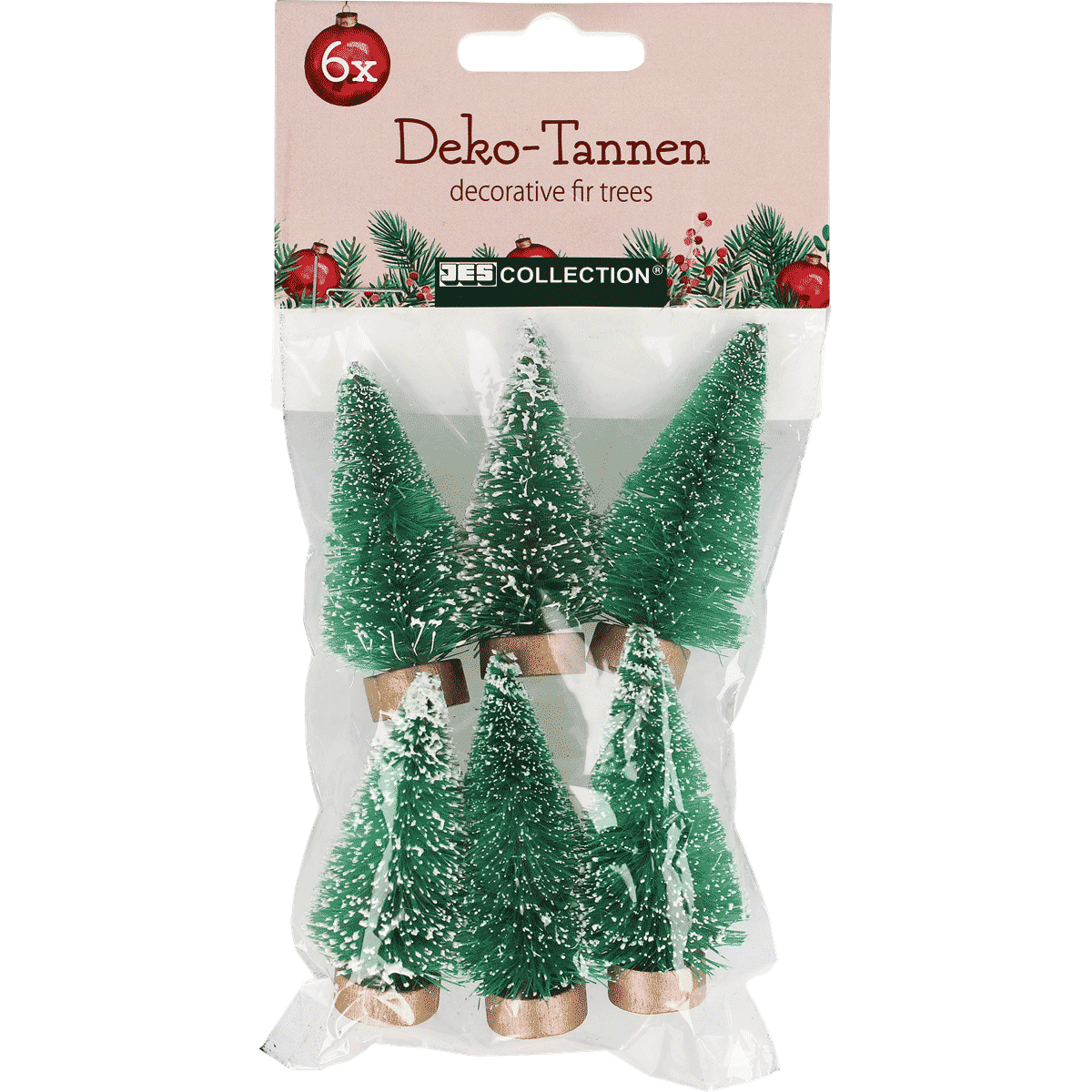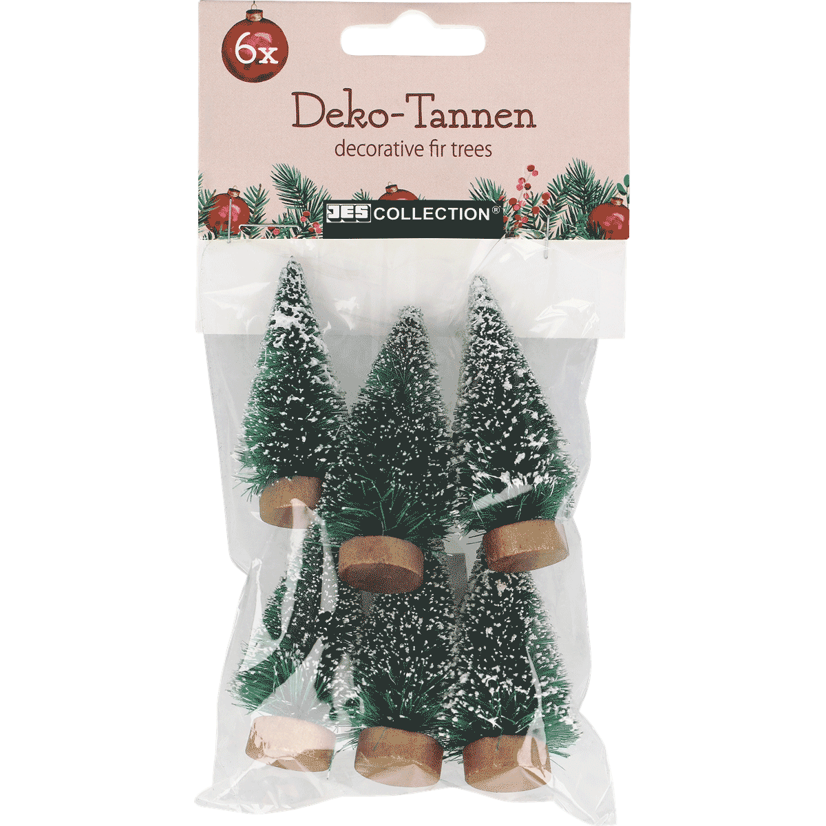 Bringen Sie mit dem 6er Set Deko Tanne Mini festliche Stimmung in Ihr Zuhause. Jede Tanne (6x2 cm) ist in 2 Farben erhältlich.