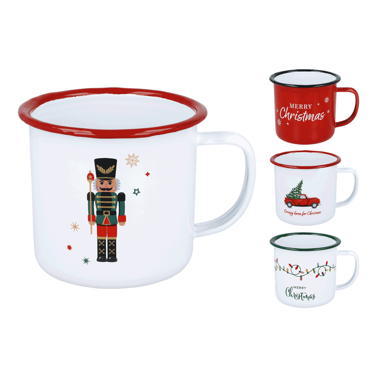 Entdecken Sie unsere Metallbecher mit Henkel zu Weihnachten in verschiedenen Designs. Schöne Geschenke für Ihre Freunde.
