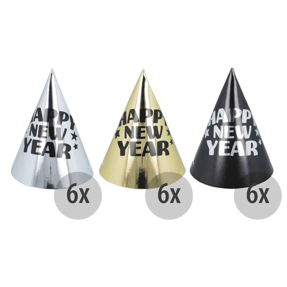 24 x 6er Papier-Partyhut Silvester (144 Stück)