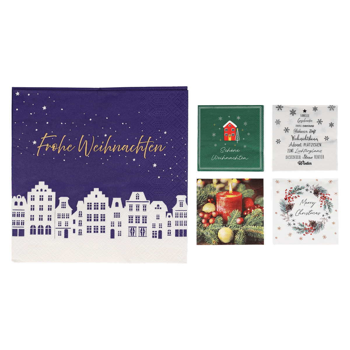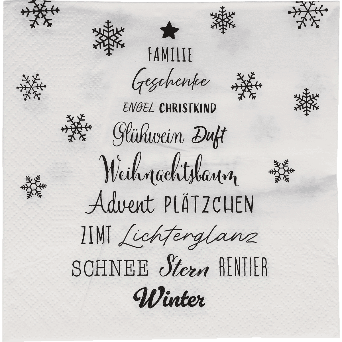20er weihnachtliche Servietten mit Sprüchen, 3-lagig, 33x33 cm, sortiert
