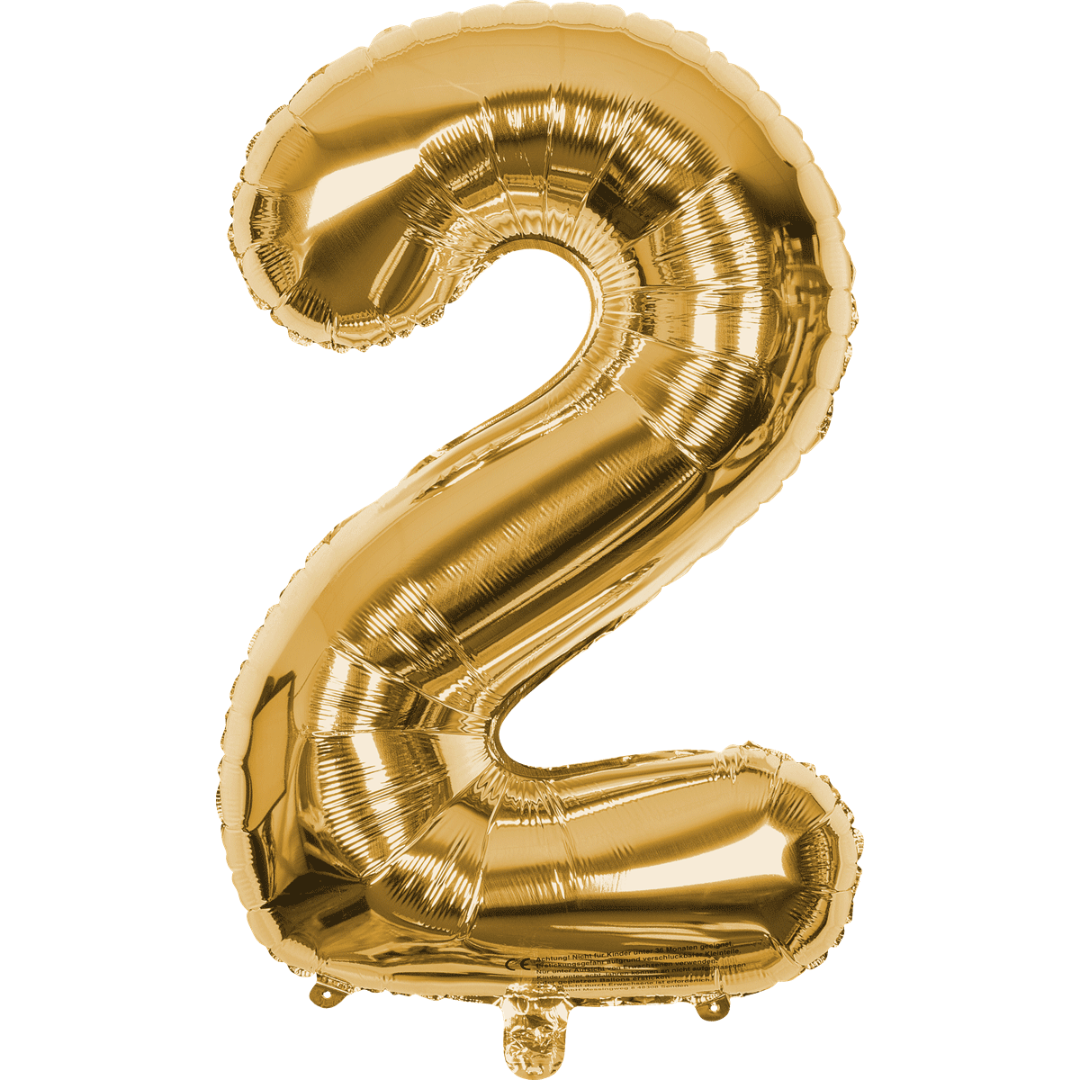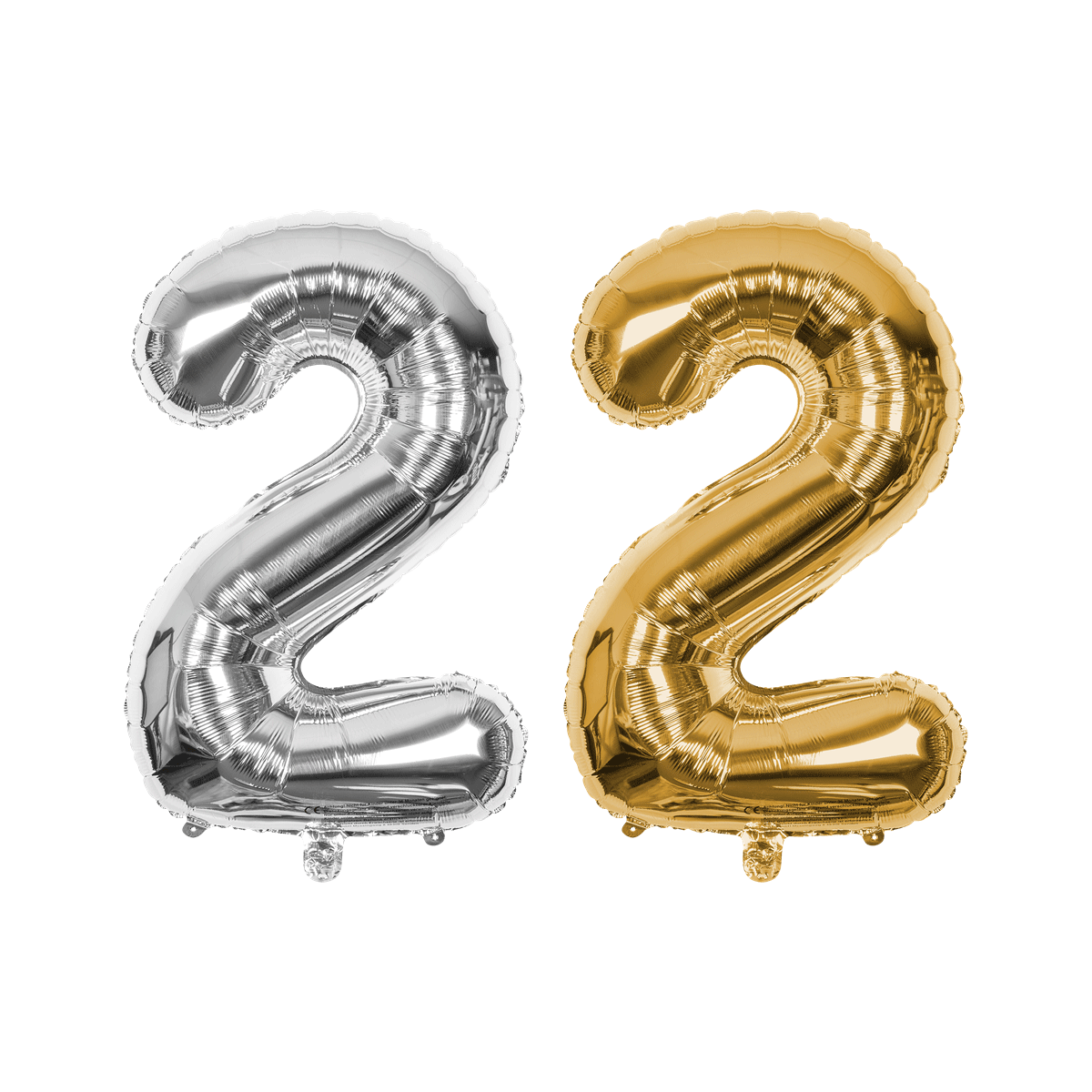 Großer Folienballon in Form der Zahl "2", mit einer Größe von 70 cm. Erhältlich in den Farben Gold und Silber. Perfekt für Geburtstagsfeiern, Jubiläen und andere besondere Anlässe.
