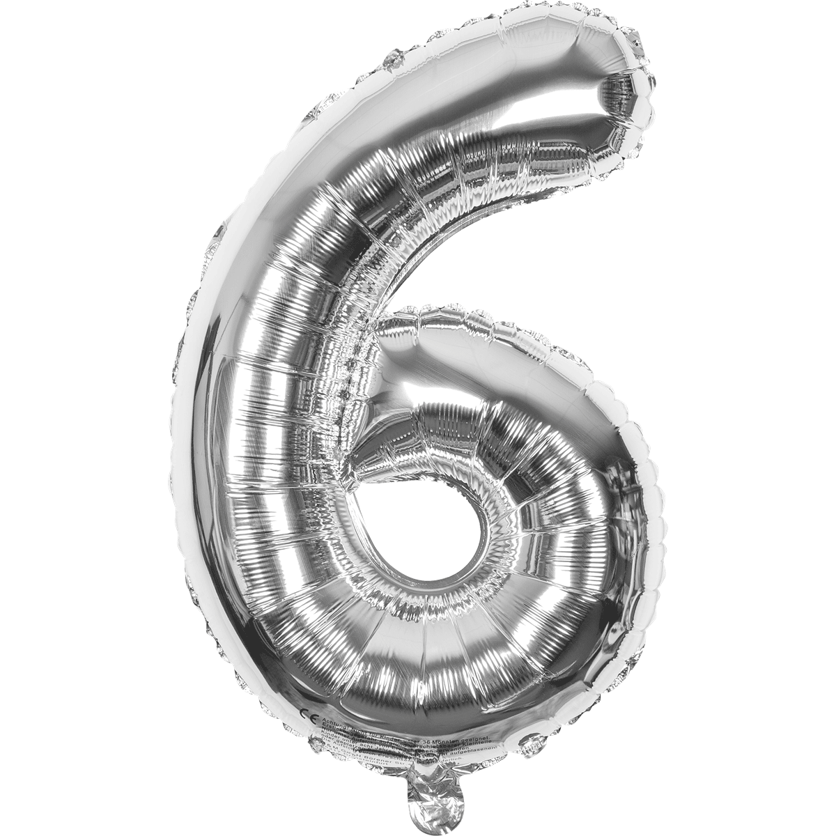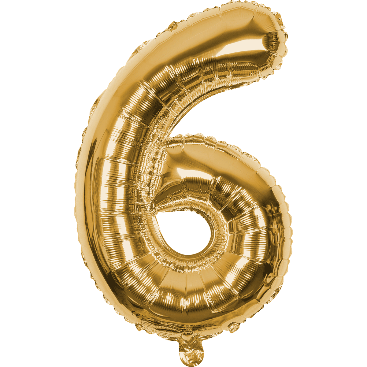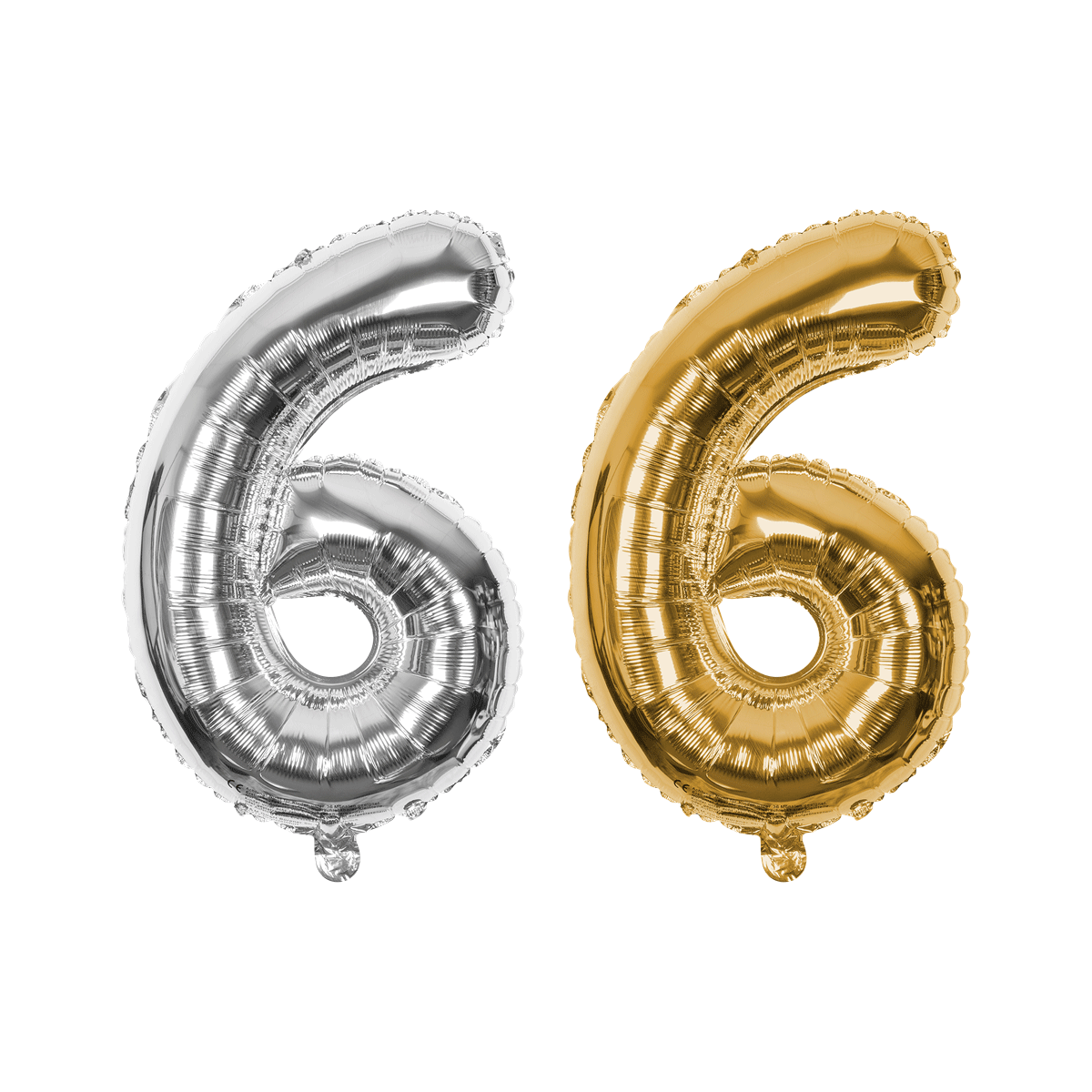 Großer Folienballon in Form der Zahl "6", mit einer Größe von 70 cm. Erhältlich in den Farben Gold und Silber. Perfekt für Geburtstagsfeiern, Jubiläen und andere besondere Anlässe.