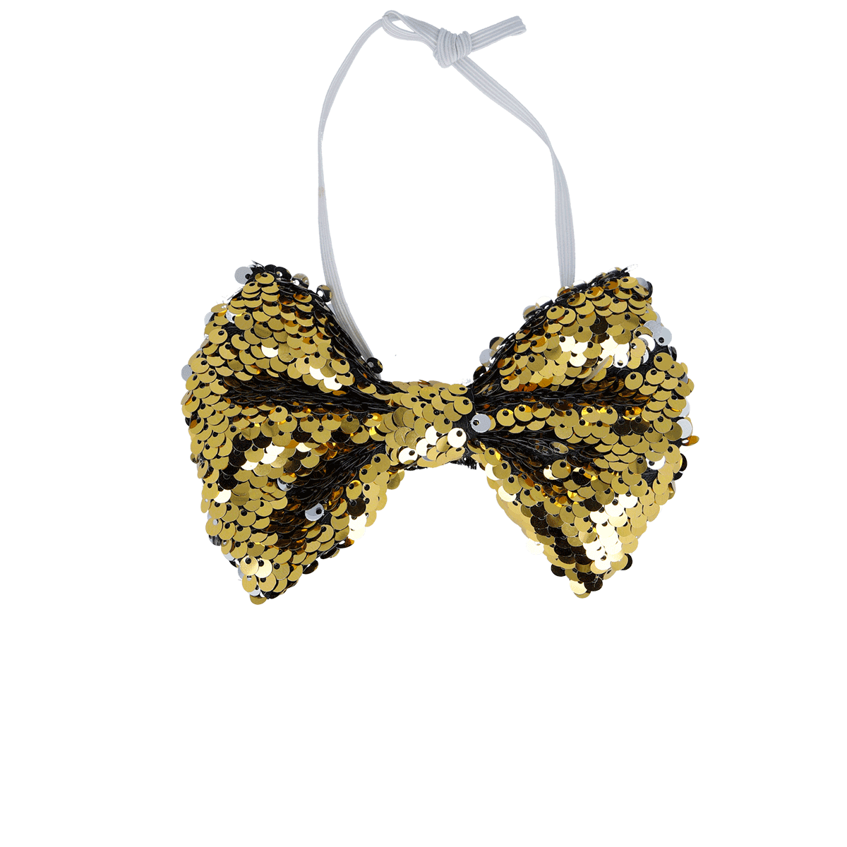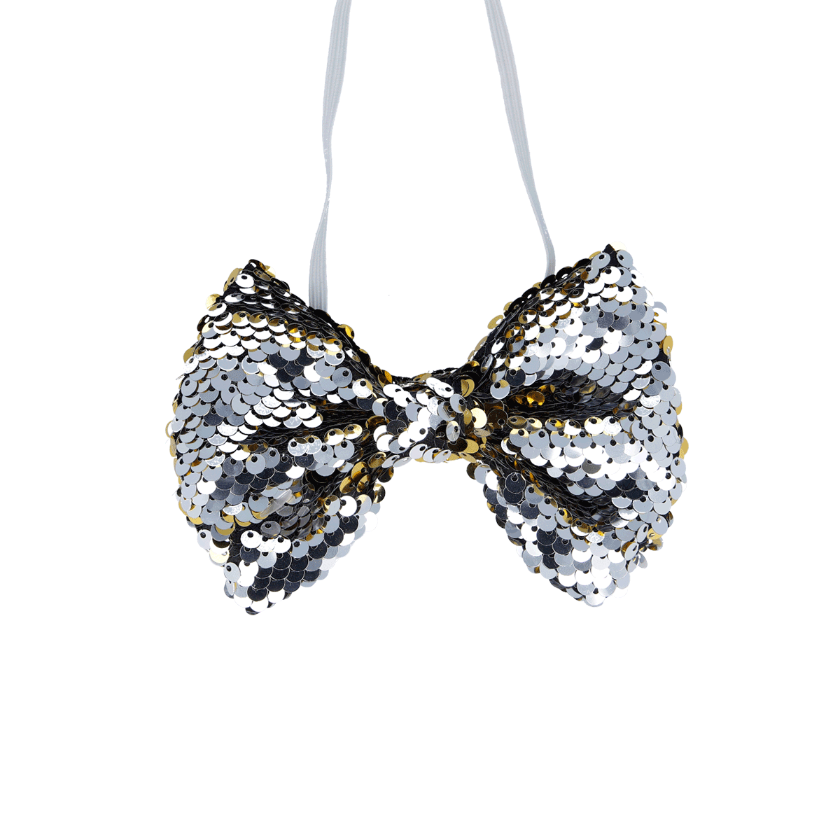 Festliche Fliege mit Wendepailletten & Gummiband, 12,5x9 cm, PET, gold/silber