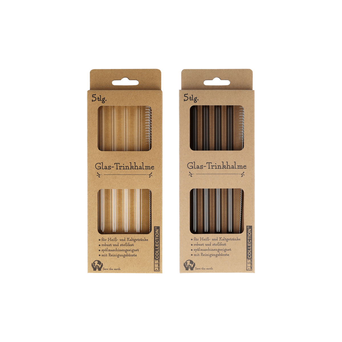 Gläserne Trinkhalme mit Reinigungsbürste – sie sind schnell zu reinigen und sehen in jedem Trinkglas super gut aus.