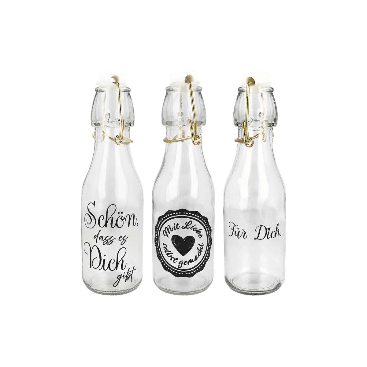 24 x Glasflasche 250ml mit Bügelverschluss gold Designs sortiert