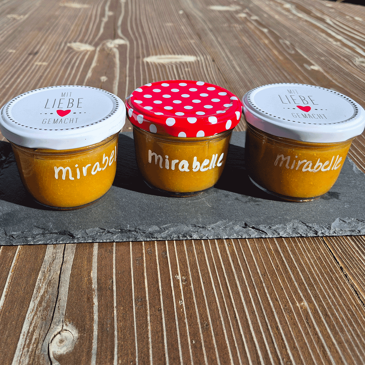 - rot mit Punkten / mit Liebe gemacht