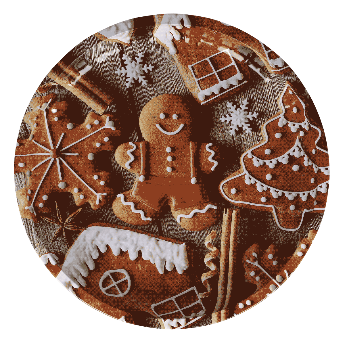 - Sortierung: 6 x Lebkuchenfiguren, 9 x weiße Schneeflocken mit rotem Hintergrund, 9 x weiß und rot mit weihnachtlichen Designs