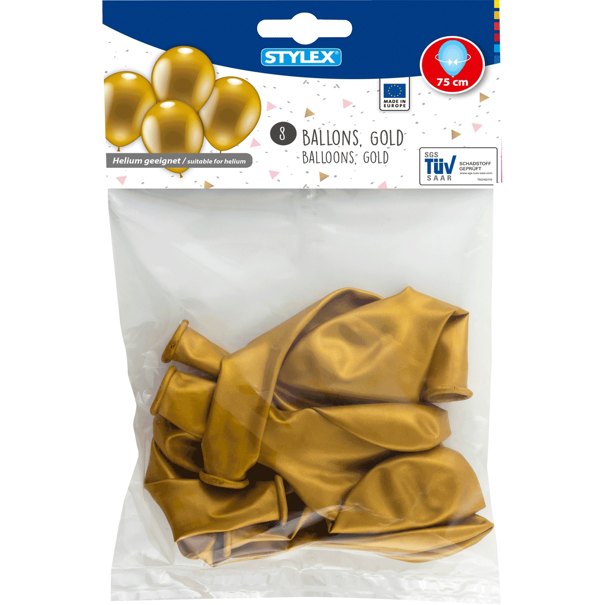 10 x 8er Luftballons Gold Ø75 cm (80 Stück)