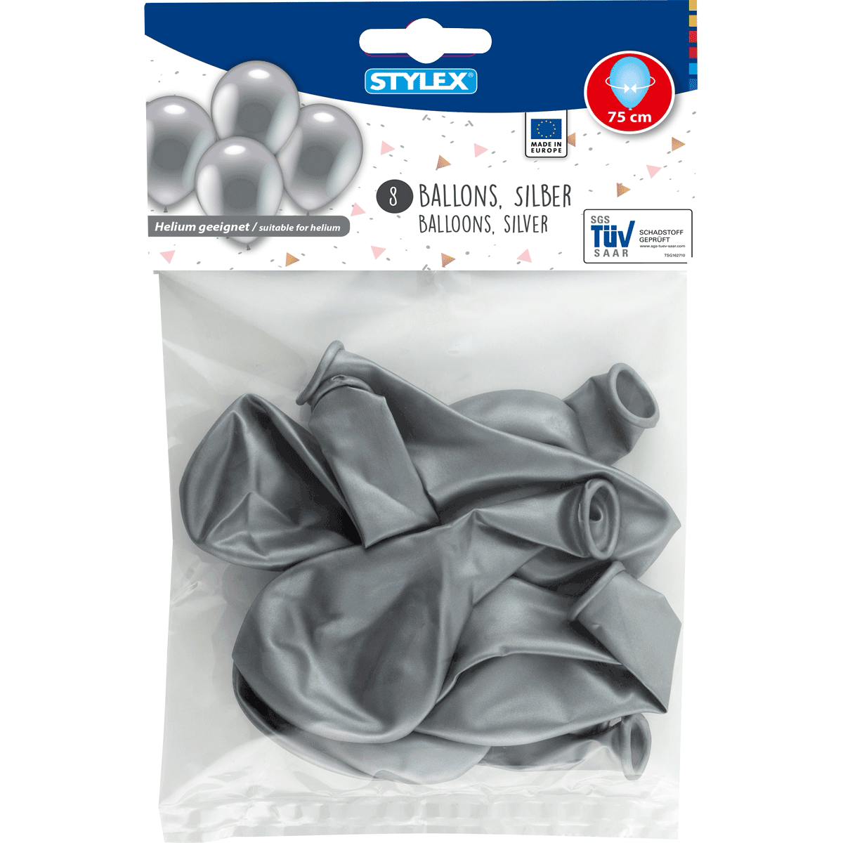 10 x 8er Luftballons Silber Ø75 cm (80 Stück)