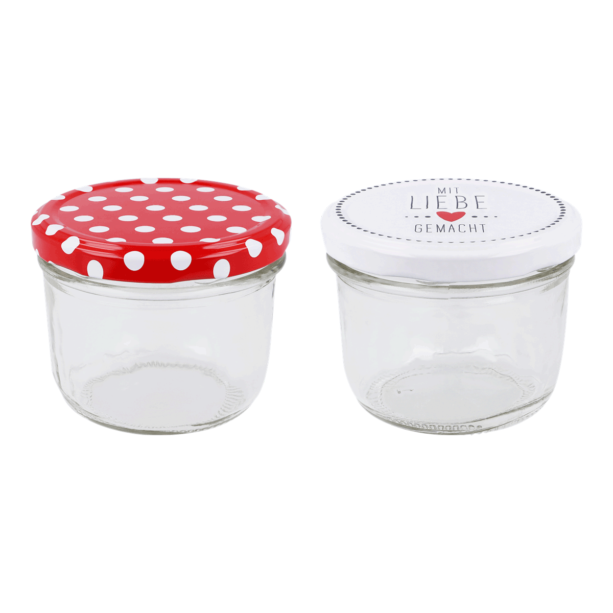 Einkochglas mit bedrucktem Deckel, 200 ml, Deckel TO 82 mm, 2-fach sortiert