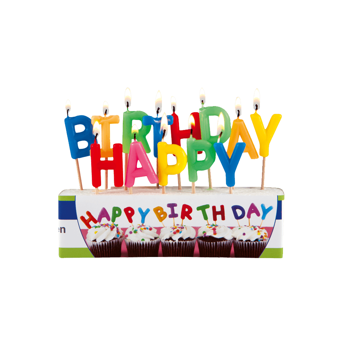 Lustige Kerze aus Buchstaben, HAPPY BIRTHDAY, 13er-Set, 4 cm